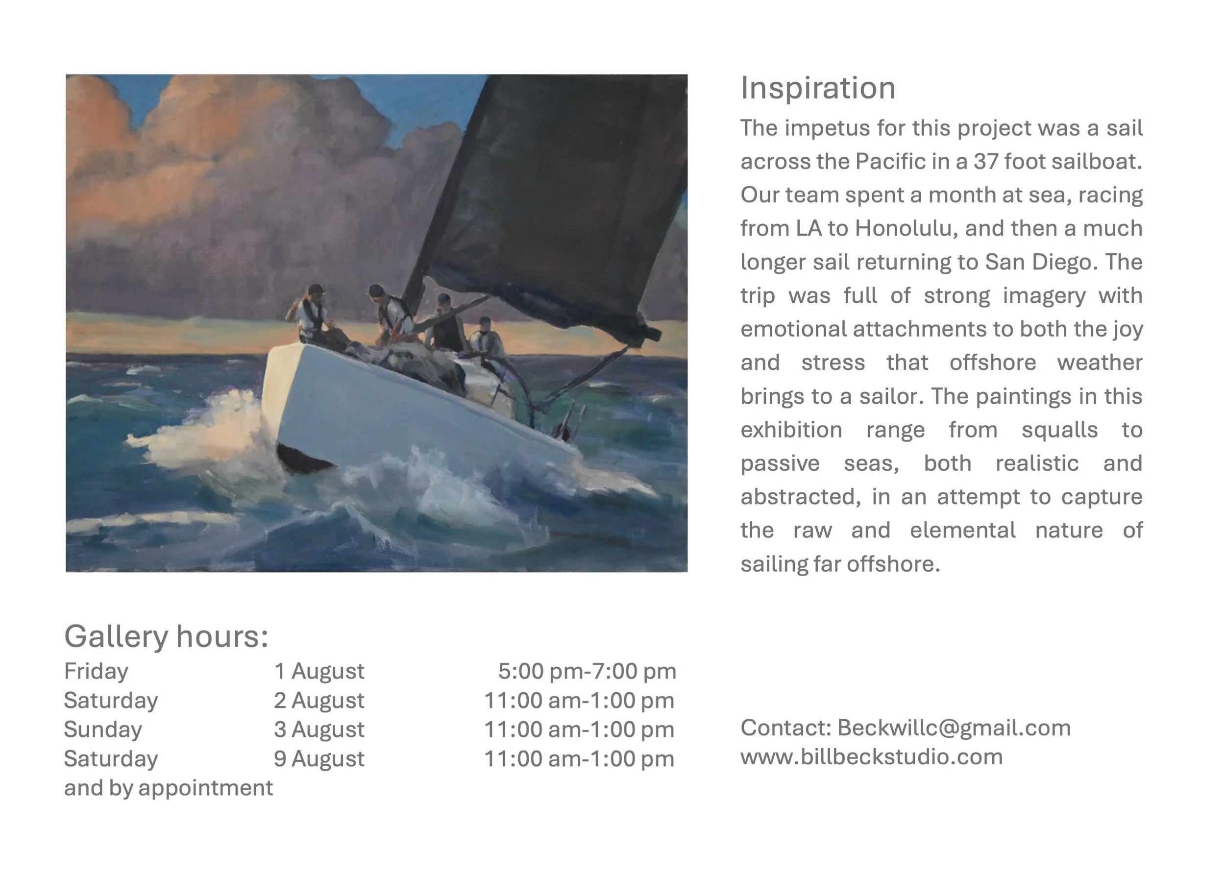 What a great opening on the 1st. Thanks to all who attended. The art committee at Saint James did a wonderful job, and Cappo Kelly provided some fine music. Many paintings were sold and are on their way to new homes. All done for the good cause of supporting the preservation of our oceans. All proceeds are going to ‘Art for Nature’. Below I’ve posted many of the paintings exhibited in the show. Have a look.